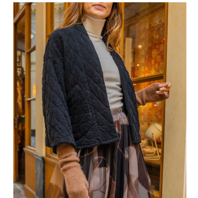 Cette veste matelassée en velours est l’alliée parfaite pour un style bohème chic en automne/hiver. Son tissu léger et doux, délicatement texturé, apporte confort et élégance à vos looks du quotidien.